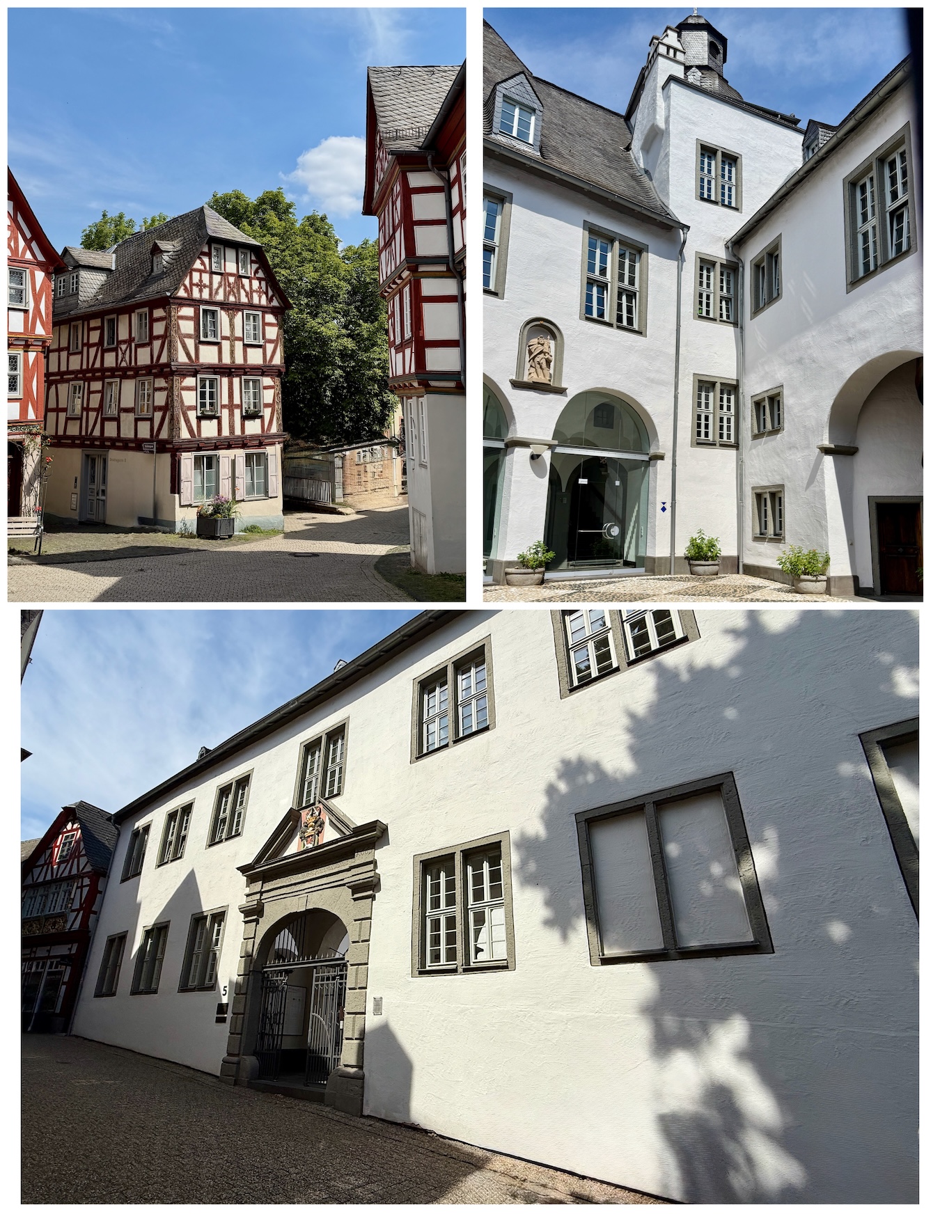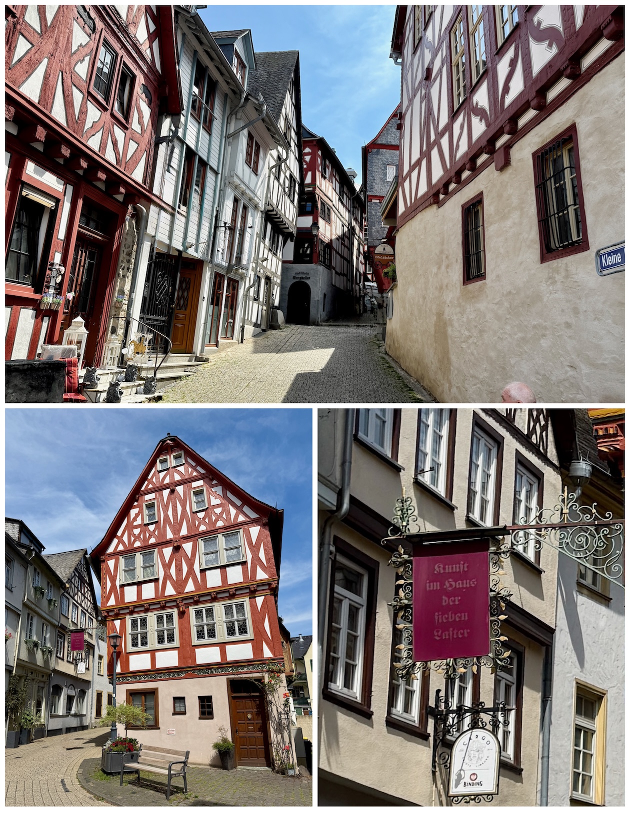Gestärkt durch diesen Frischekick machten wir uns ans Entdecken des schmucken Städtchens. Limburg an der Lahn hat mehr Fachwerkhäuser als Instagram Filter. Wir schlenderten am Walderdorffer Hof vorbei, wo früher Fürsten Hof hielten und heute Touristen nach dem besten Fotospot suchen. Am Werner-Senger-Haus machten wir eine Pause – danach bestaunten wir das Haus der Zunft der sieben Laster :-). Was das wohl für Laster waren??? Das Schloss Limburg thronte majestätisch, und die alte Lahnbrücke erzählte uns in steinerner Ruhe von vergangenen Abenteuern (und vermutlich von Radfahrern, die im Zickzack fuhren).