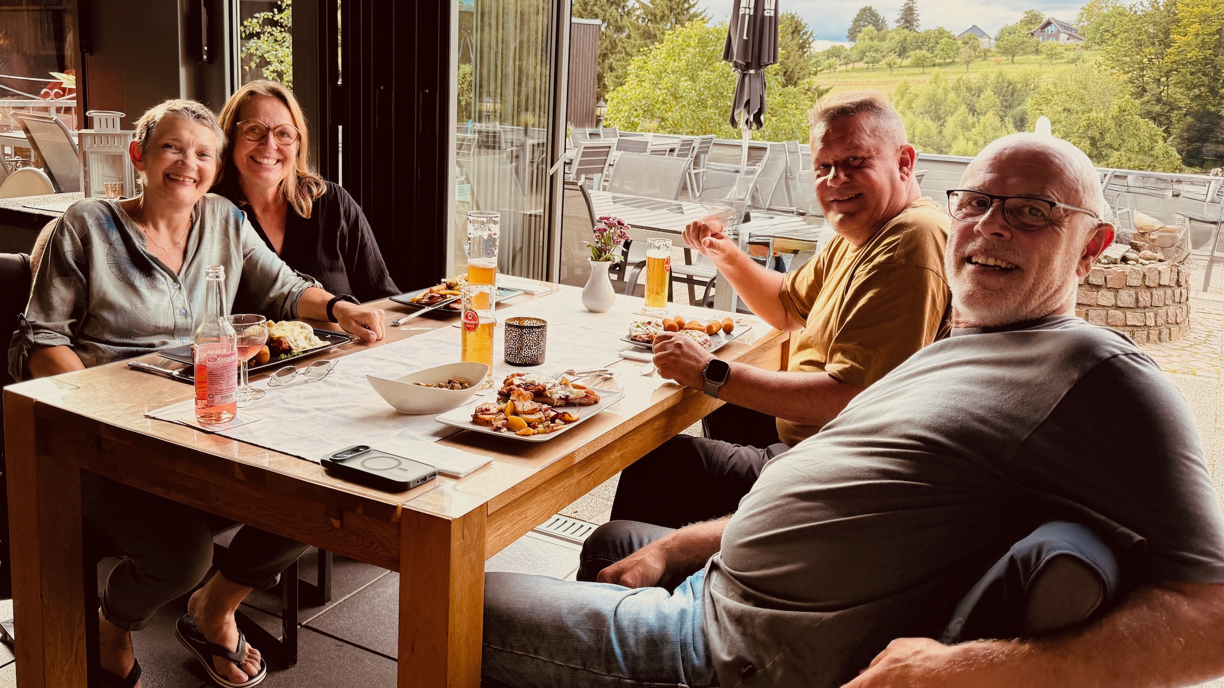 Während Roger und Andreas heldenhaft durch die Wildnis pirschten, nutzten Katja und ich die ruhige Zeit, um mal so richtig aus dem Nähkästchen zu plaudern. Wir sinnierten über das Auf und Ab des Alltags, tauschten die neuesten Geschichten von Kindern, Enkelkindern und allerlei Familienabenteuern aus – und lachten dabei so herzlich, dass sogar die Nachbarskatze neugierig durchs Fenster linste.
