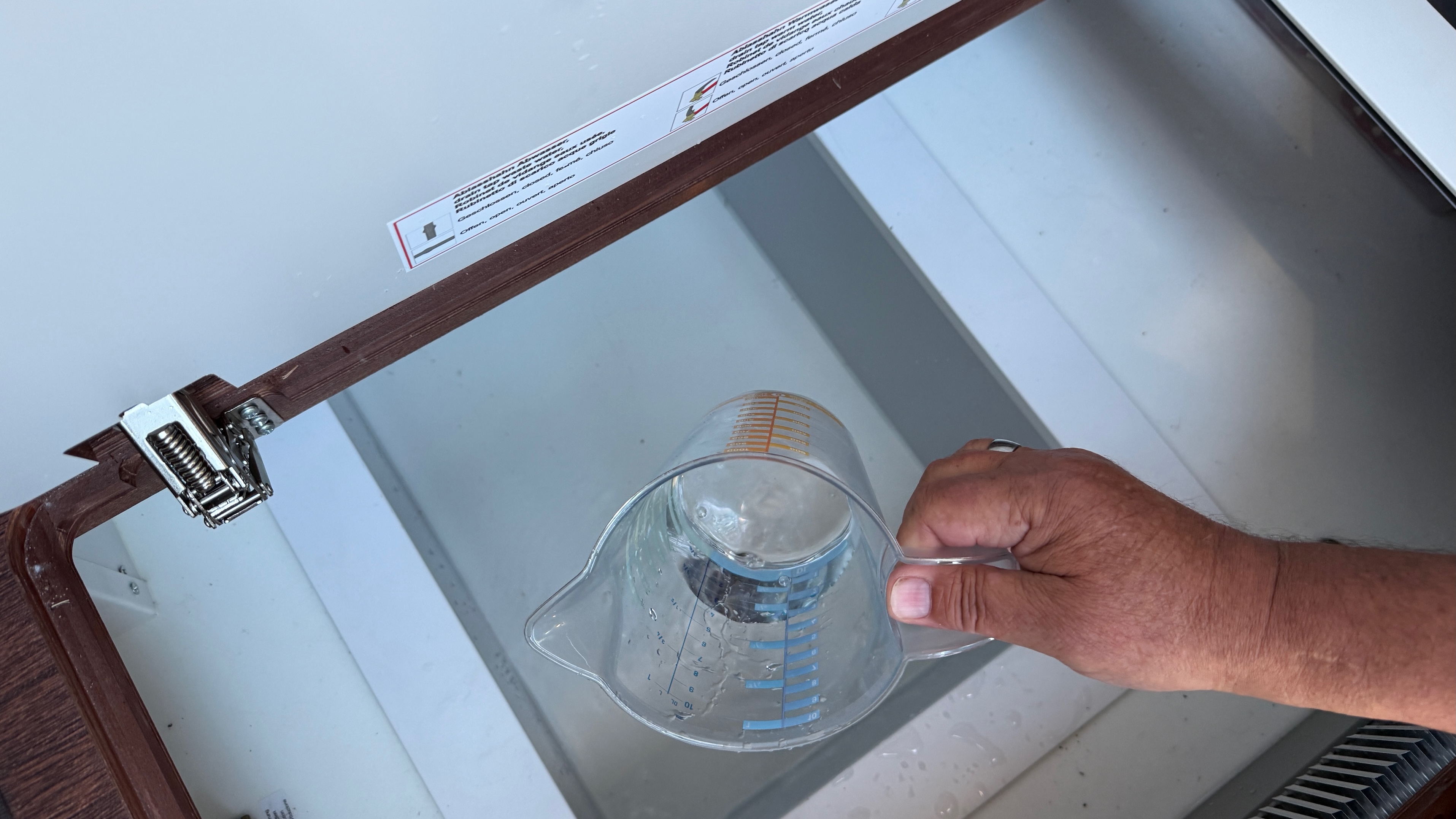 Dort angekommen – kurz vor 14 Uhr – wartete tatsächlich schon Marcel, der von Clemens aufgebotene Handwerker auf uns. An einem Sonntag (ein riesen Dank an Clemens und René für die Organisation)! Für uns fast ein Wunder, für ObeliX die Rettung. Marcel schaute sich das Drama an, schraubte ein bisschen hier, zwickte ein bisschen dort – und nach exakt 15 Minuten war der Übeltäter gefunden und behoben: ein defekter Wasserschlauch-Anschluss. Zack, fertig, trocken.