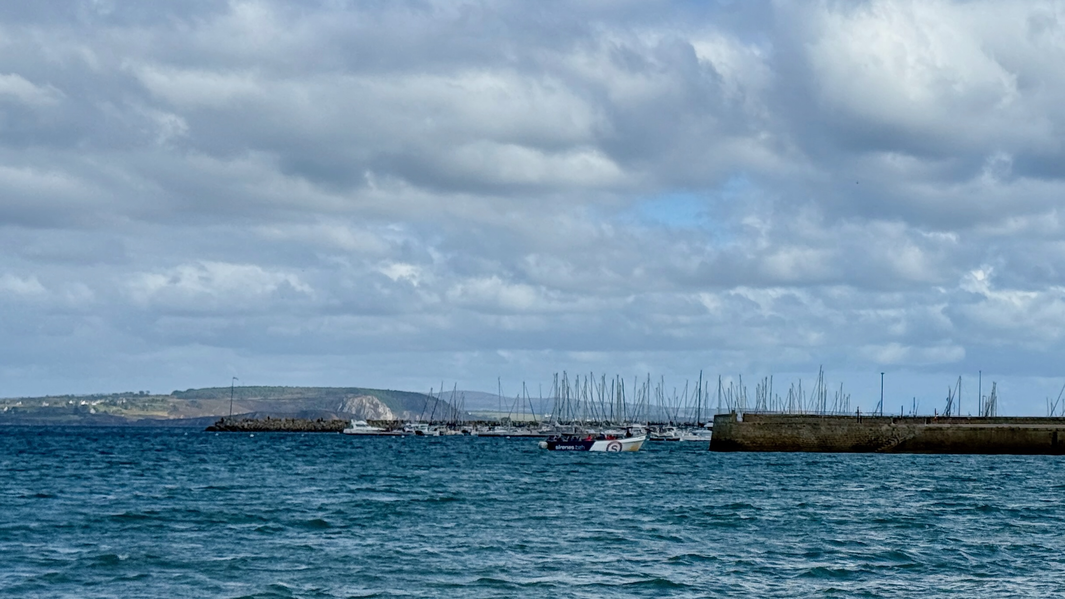 Die Nacht in Roscoff war geprägt von Regen, Sturm und einer ungleichen Schlafbilanz: Roger schlief wie ein Murmeltier im Winterschlaf, ich dagegen wälzte mich mit meinen knapp 2 Stunden im Bett wie ein Brathuhn am Spiess. Frisch geduscht (man gönnt sich ja sonst nichts) starteten wir trotzdem voller Elan Richtung Crozon.